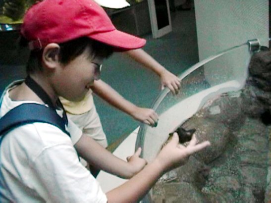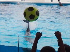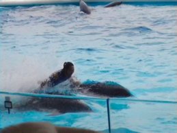 ![]() 本日の1番のお目当て 「イルカとアシカのショー」 のはじまりを待ちます。 |