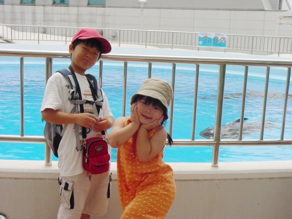 ![]() クジラのプールの前で なぜかセクシーポーズ |