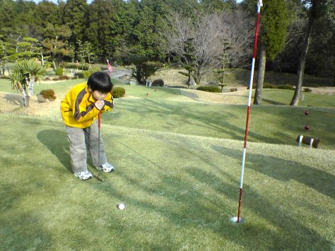 12月31日 きょうは大晦日ですが、 掃除を済ませたあと、雲仙のパットゴルフ場へ行きました。 (お父さんが休みに入ったら行こうと約束していたのです。) 途中、カラスにボールを持って行かれるハプニングがあり ビックリ!!