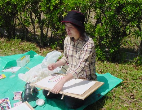 ![]() こどもたちはあまりに早く 描き上げたので、 スケッチしているところを撮るのを うっかりしていました。 かわりにお母さんの写真を載せます。 |