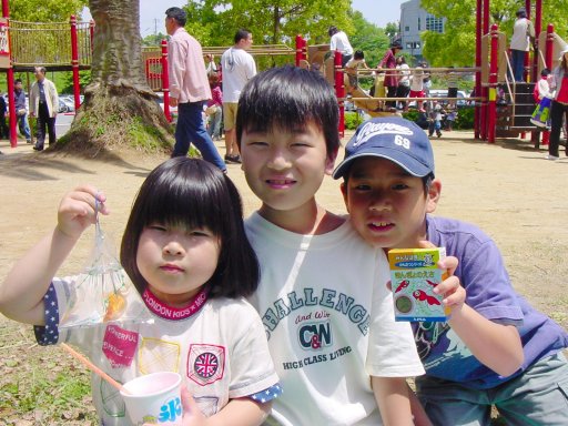 ![]() ひろこが大きな金魚をすくいました。 3人で育てることになりました。 |