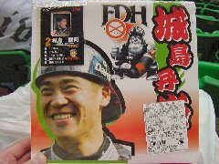 大ファンの城島のカードが 欲しくて、お父さんは無理矢理 「城島弁当」 を食べさせされることに。 (城島はオリンピック出場のため いませんでした。残念!!) |