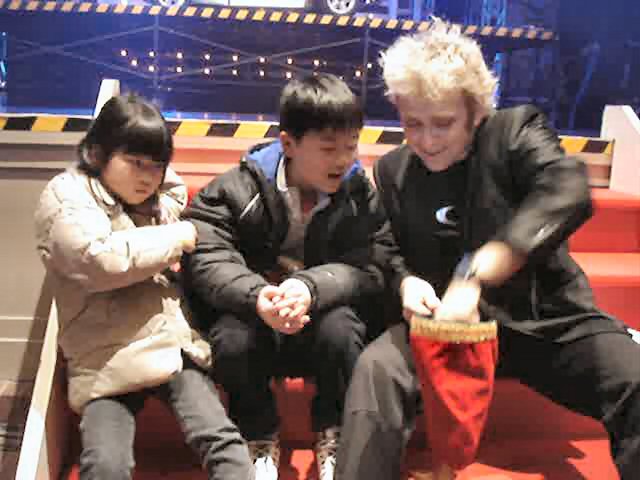 ![]() ショー自体は例のごとく 撮影禁止だったのですが、 ショーが終わった後、 写真をとってもらおうと近くに行ったら、 何と子供たちに マジックを教えてくれました!! (写真をクリック!!) |